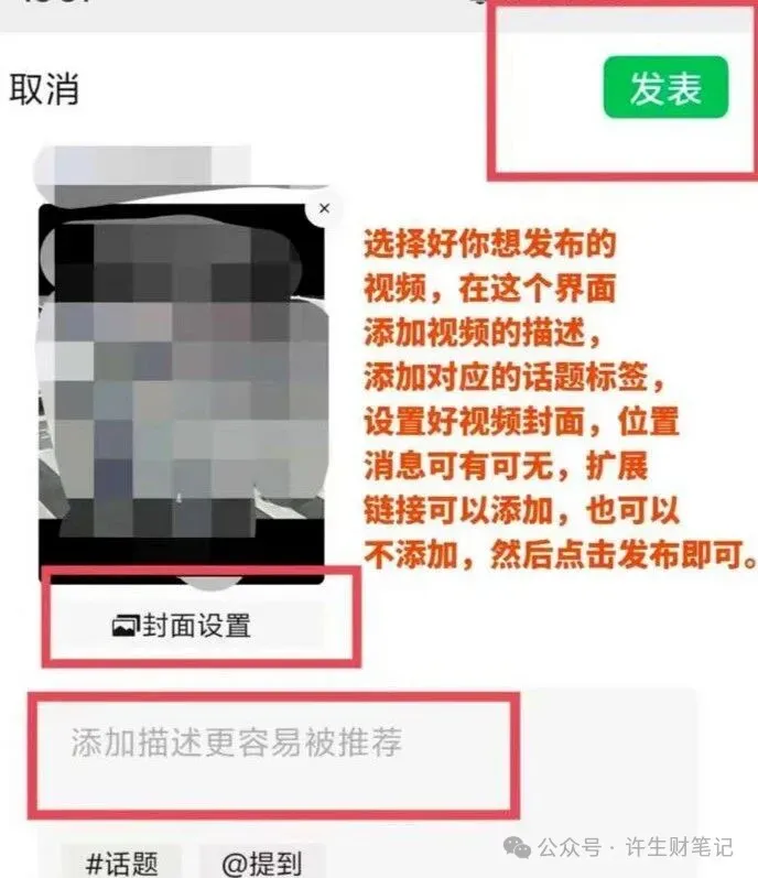 1. 点击视频号底部【+号】,选择视频进入发布页面