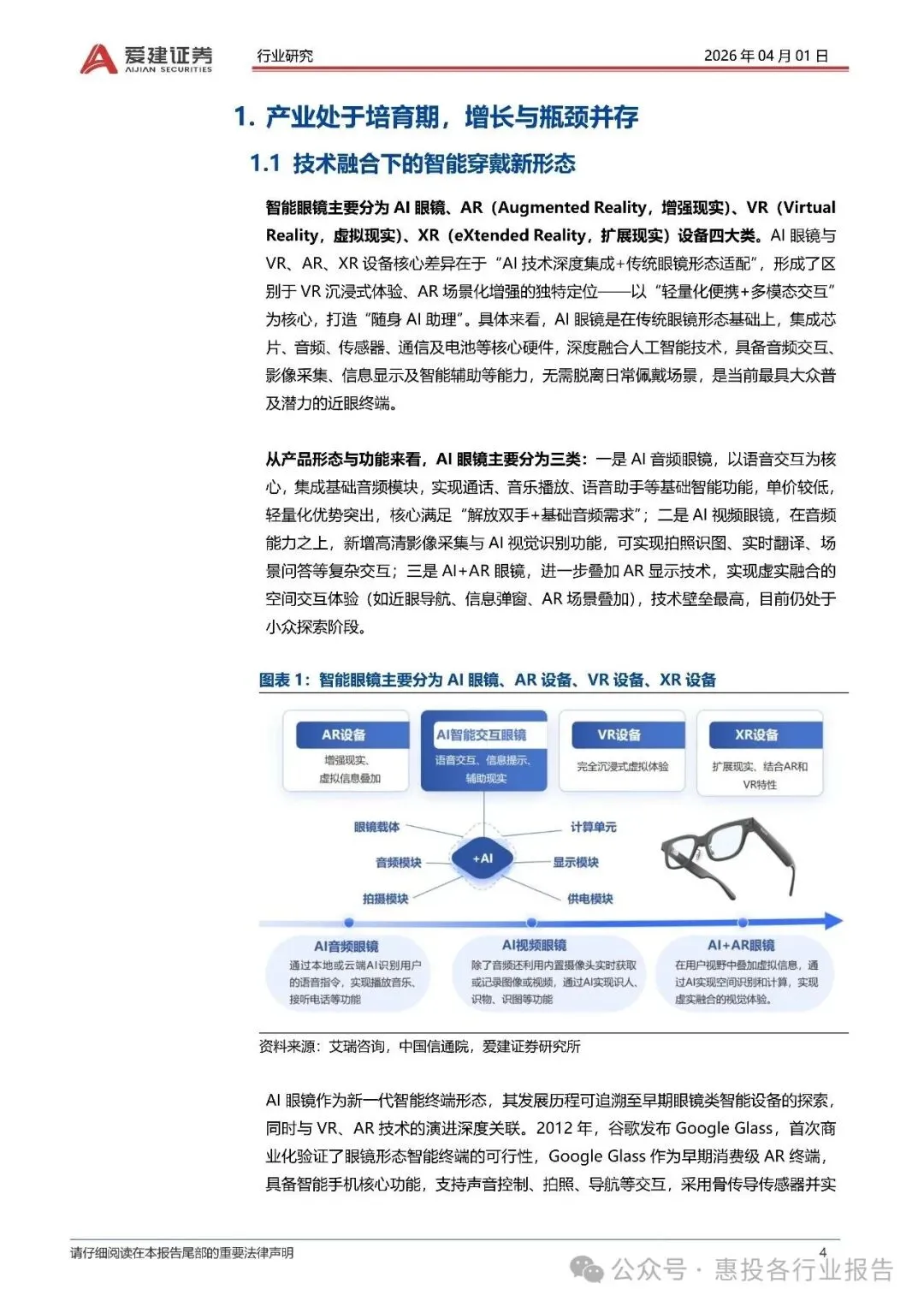 图表1:智能眼镜分类 - 图表2-4:Google Glass产品图与核心特点及问题