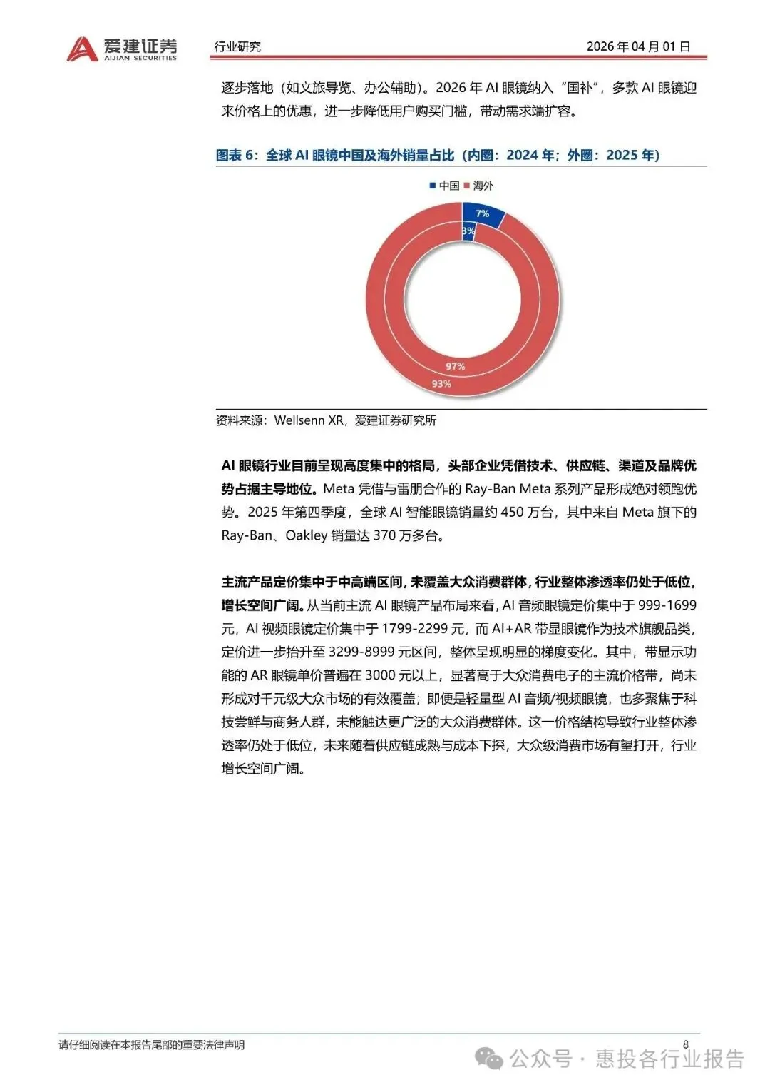 :全球市场由Meta主导,2025年其出货量占比达85.2%;中国市场的增长潜力巨大,2025年销量占比提升至7%,但仍以海外产品为主。 - 产品定位