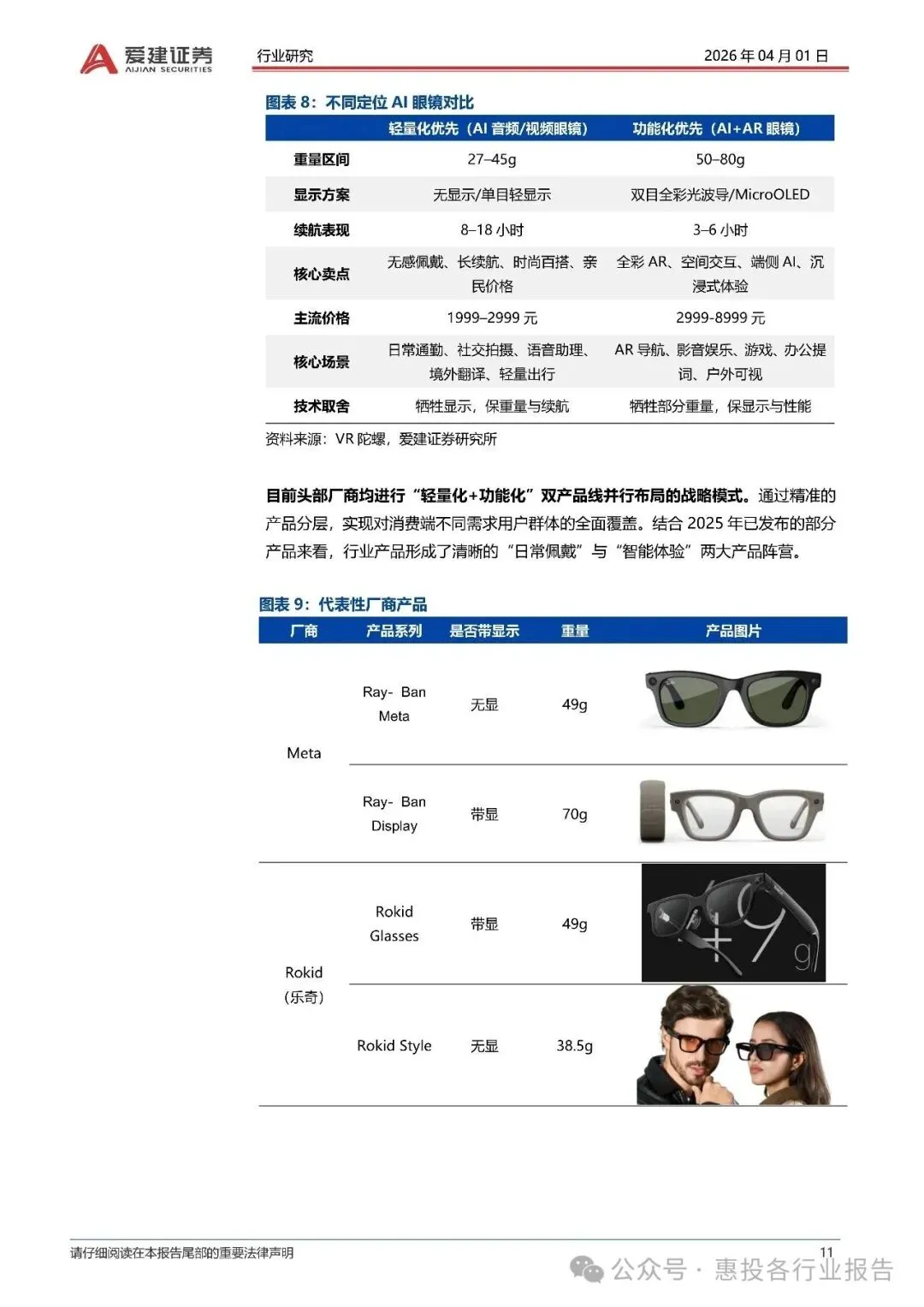 :Meta占据主导地位,其Ray-Ban系列销量占全球AI眼镜的约370万台。 - 中国市场:小米、Rokid、阿里巴巴等企业快速崛起,形成差异化竞争,主要集中在轻量化与生态整合方向。