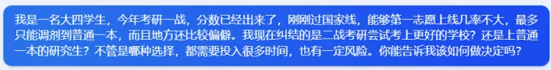 正好看到有学生发来关于考研“二战还是调剂”的困惑,土豆决定去问问使用ChatGPT技术的新必应(New Bing),看它会给出什么答案呢?