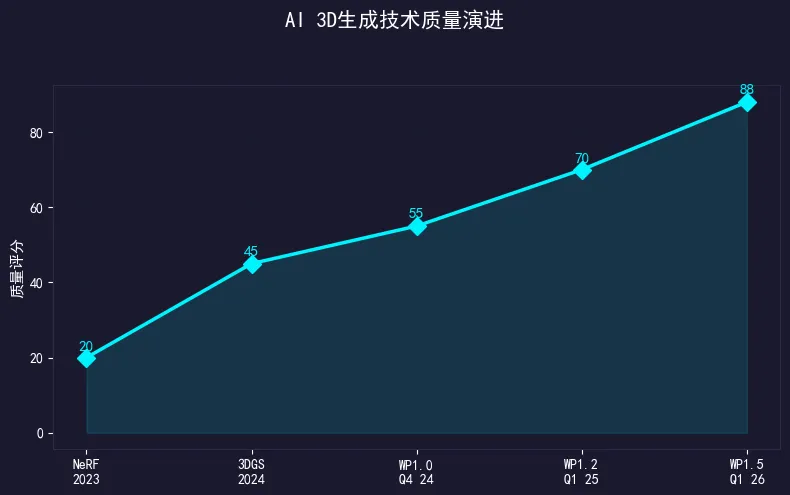 从技术路径看,Waypoint 1.5的突破建立在2023年NeRF和2024年3D Gaussian Splatting技术的积累之上,但实现了从"静态重建"到"实时交互生成"的质变。这是AI从2D走向3D的关键一步。