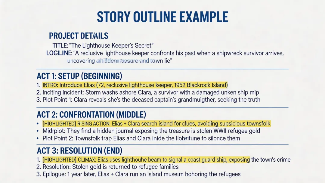 有了创意方向,现在需要扩展成详细大纲。这是最关键的一步——大纲好了,后面的剧本就是填空;大纲烂了,写出来也是垃圾。
