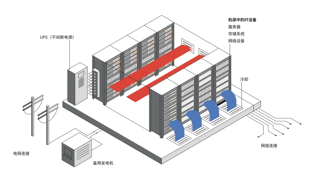 数据中心的能耗结构呈现明显的AI导向特征,普通数据中心约60%的电力用于服务器,而专为AI工作负载优化的超大规模数据中心,这一比例高达75%左右,因为AI专用服务器包含的芯片功耗是传统服务器的2-4倍。