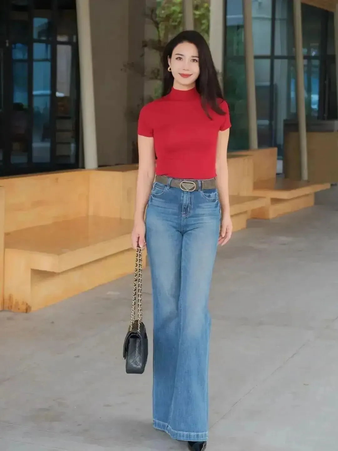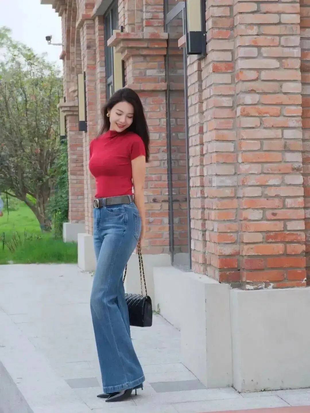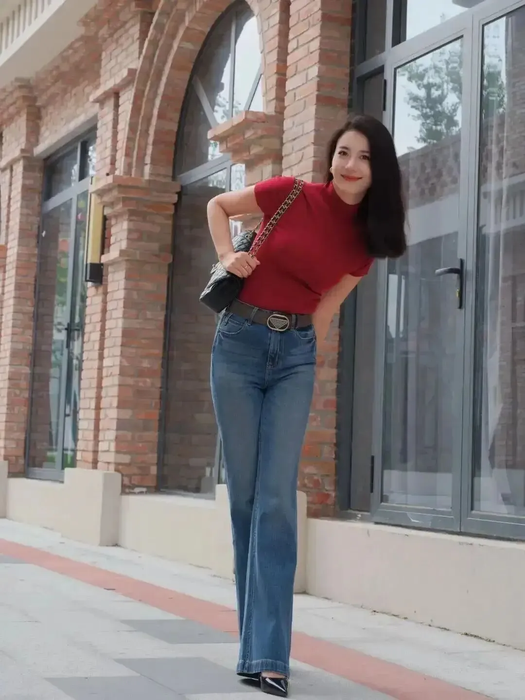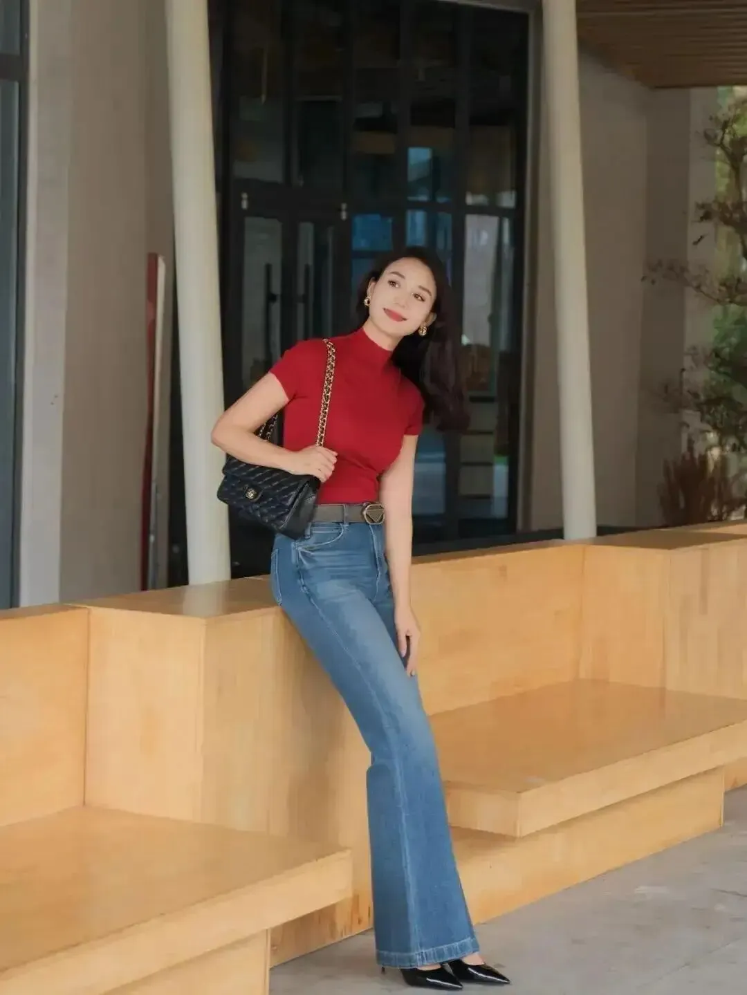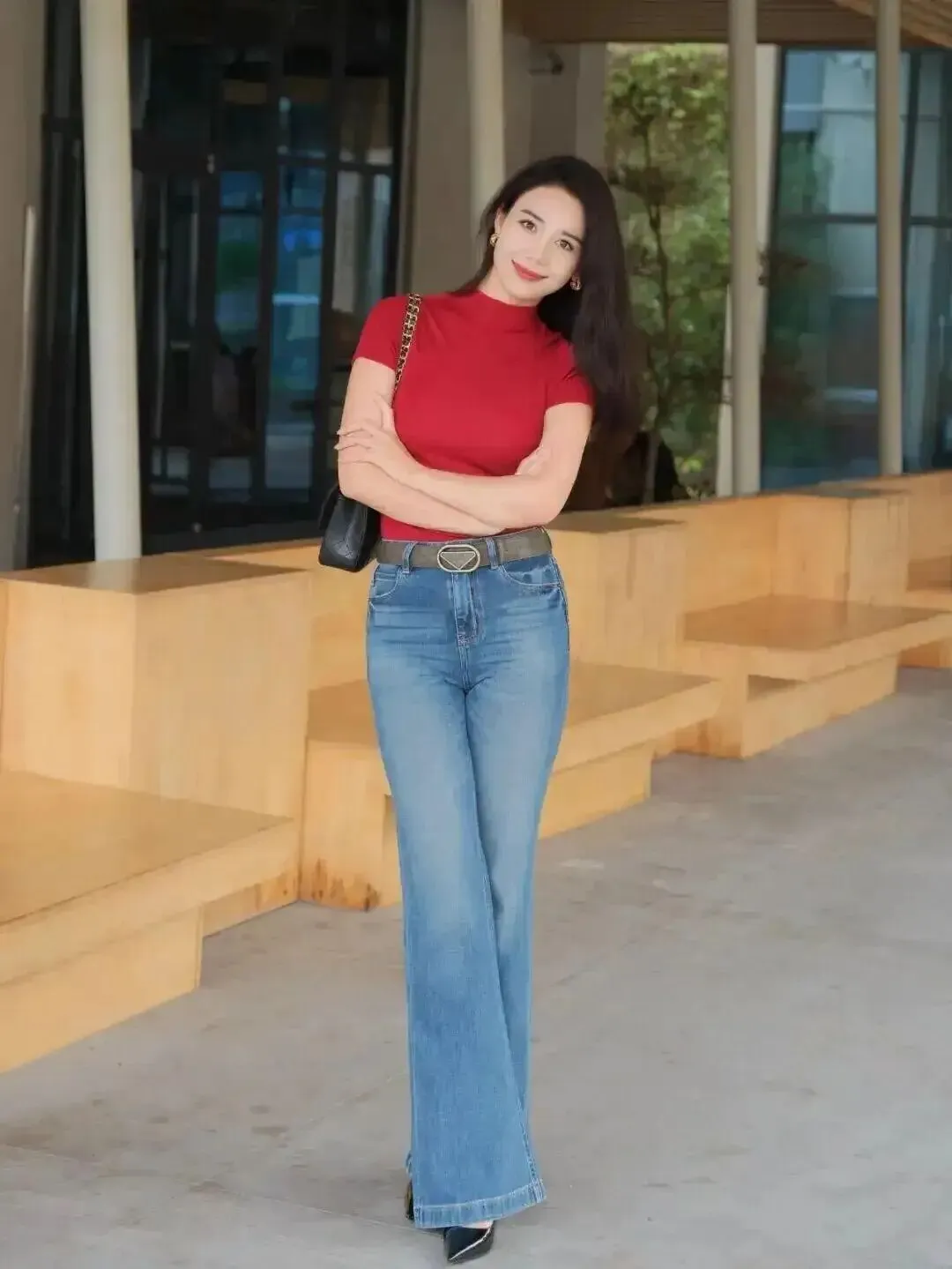 双脚别硬并,轻轻交叉一点点,线条立刻出现;再让一只手扶住旁边的墙/柱子,画面不空、身体也更放松,特别适合怕尴尬的人。