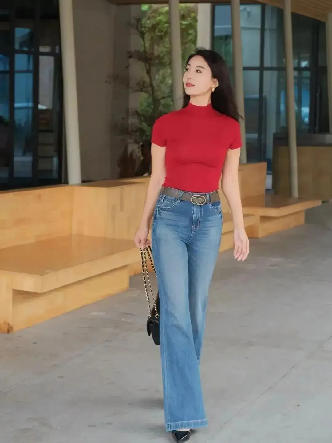 全身照最“出片”的不是凹到极致,而是动起来。提包、向前迈一步,视线看向旁边,不看镜头更自然。步幅一出现,腿的纵向线条就被拉开了。