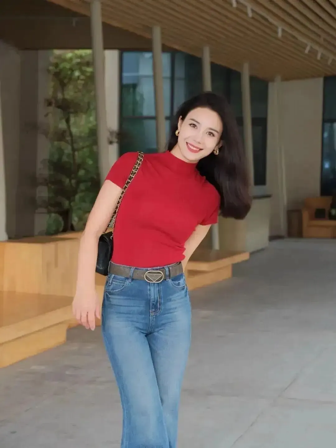 不会摆动作就去找道具:墙、栏杆、门框都行。轻轻侧靠,让身体有支点;手上再配合包或扶一下,头转向别处带点笑,整个人会更松、更像街拍。