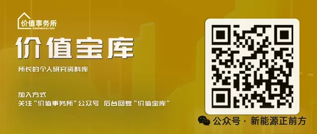 如果大家也对所长看的企业、行业专家交流纪要感兴趣,可以加入《价值宝库》查看。《价值宝库》是所长团队精心打造的投研资料库,每天会上传100+内容,绝大多数都是大家最为关心的一手调研纪要,此外还有各种研报、突发/热门事件分析、宏观政策及市场解读等内容。总之,只要是对咱们有用的,所长能找到的,都会上传到里面。在《价值事务所》或《新能源正前方》后台消息对话框回复“价值宝库”或扫描下方二维码即可加入。