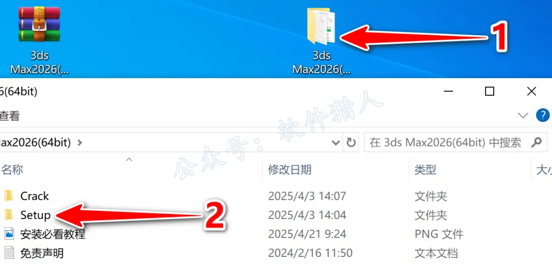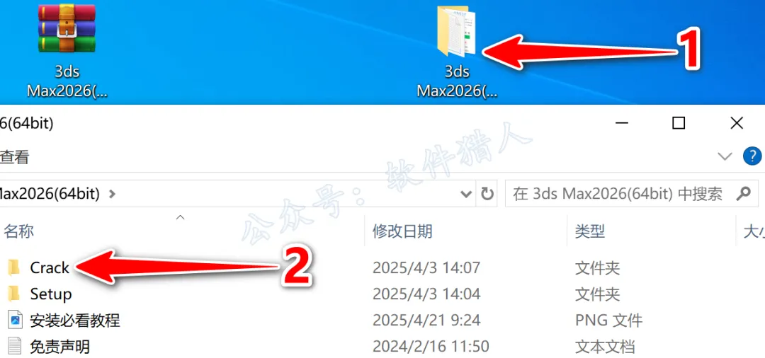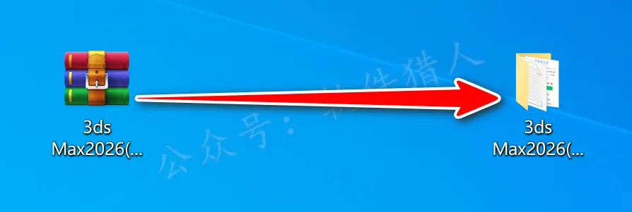 1.关注本公众号后回复“3dsmax2026”,即可获取最新安装教程(页面里附有下载链接,若失效会维护),小编将下载好的压缩包移动到桌面并右键解压到当前位置,方便安装后即将安装包删除。(没有解压软件?点我查看解压教程!)