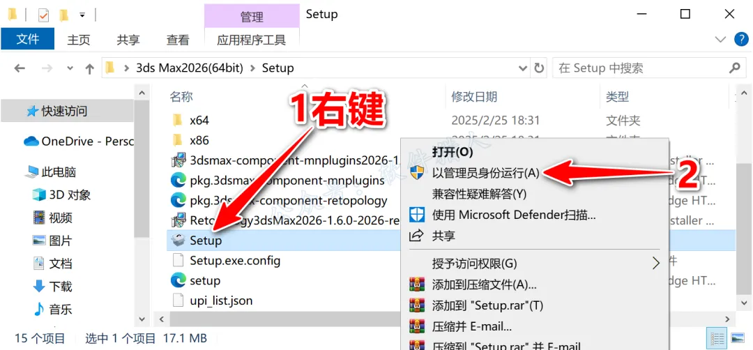 3.鼠标右击【setup】安装程序,选择【以管理员身份运行】。