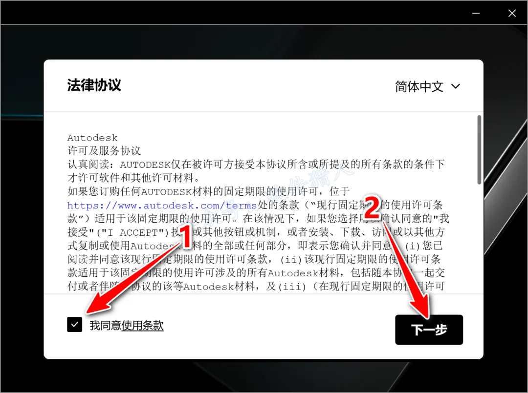 5.勾选【我同意...】,然后点击【下一步】。