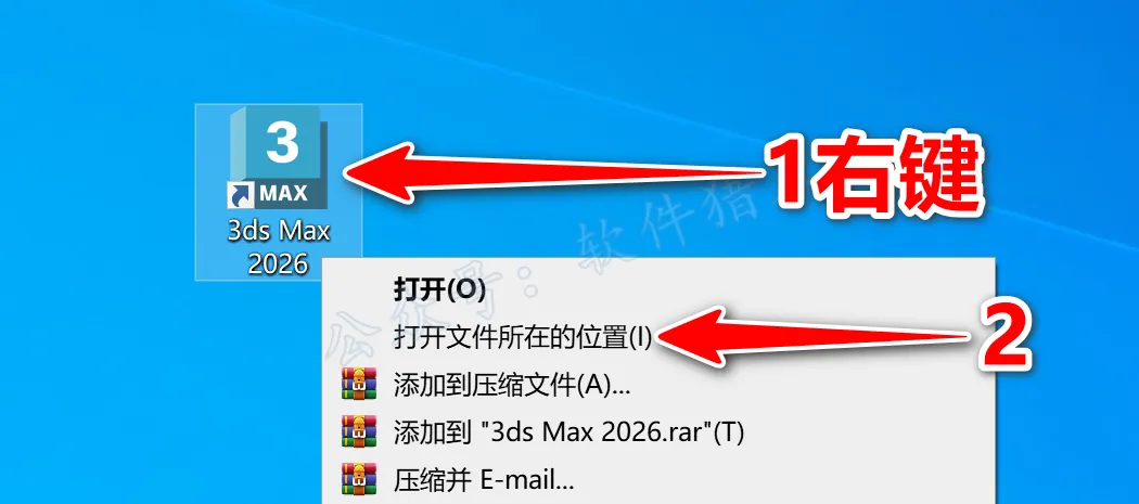 12.在桌面上找到3dmax软件图标,鼠标右击选择【打开文件所在的位置】。