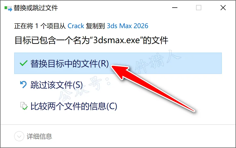 14.点击【替换目标中的文件】。