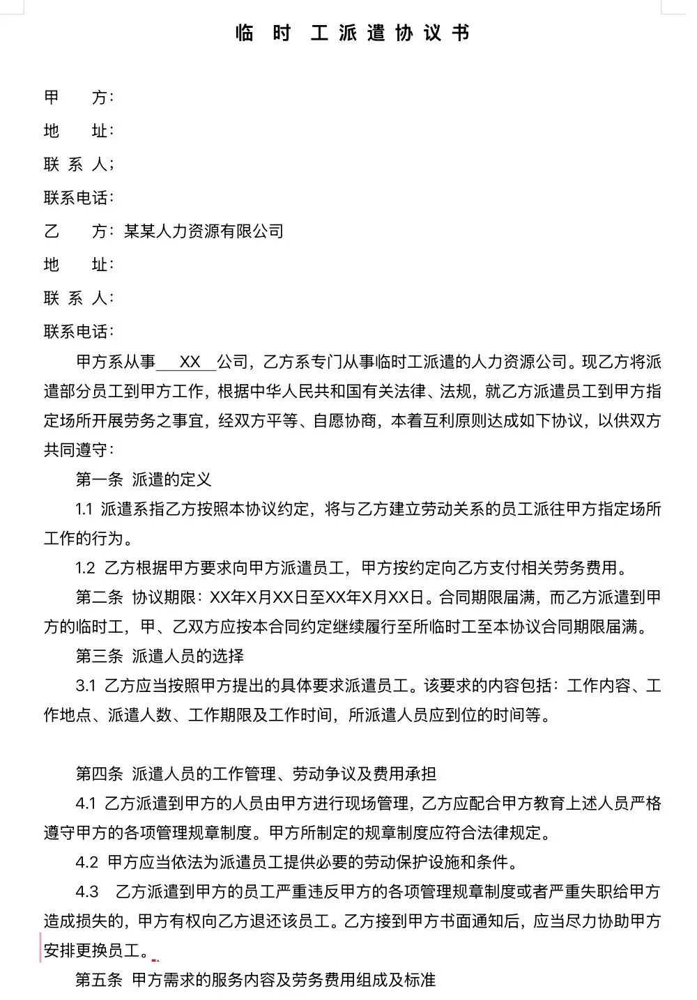 2.注意不可涉及管理职能、主要岗位的内容,劳务合同一般是适用于公司临时性、辅助性岗位。