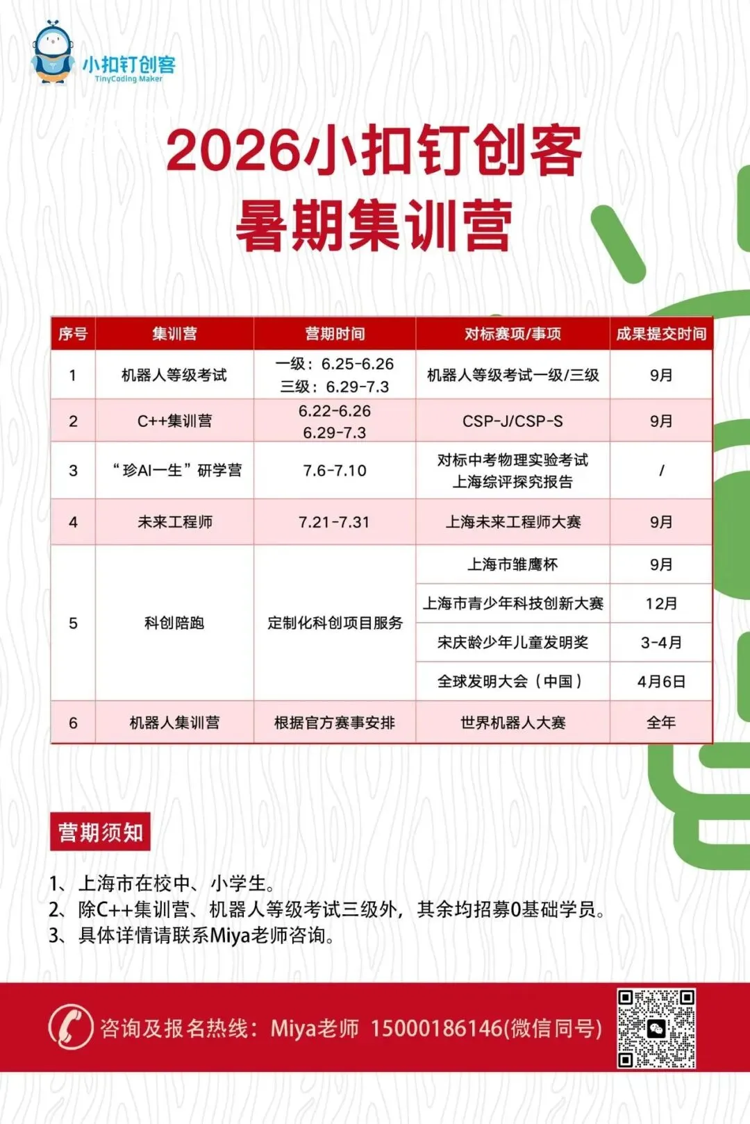 成长无止境,暑假更精进。2026暑假,让孩子与小扣钉创客一起,在科技领域,自在翱翔!