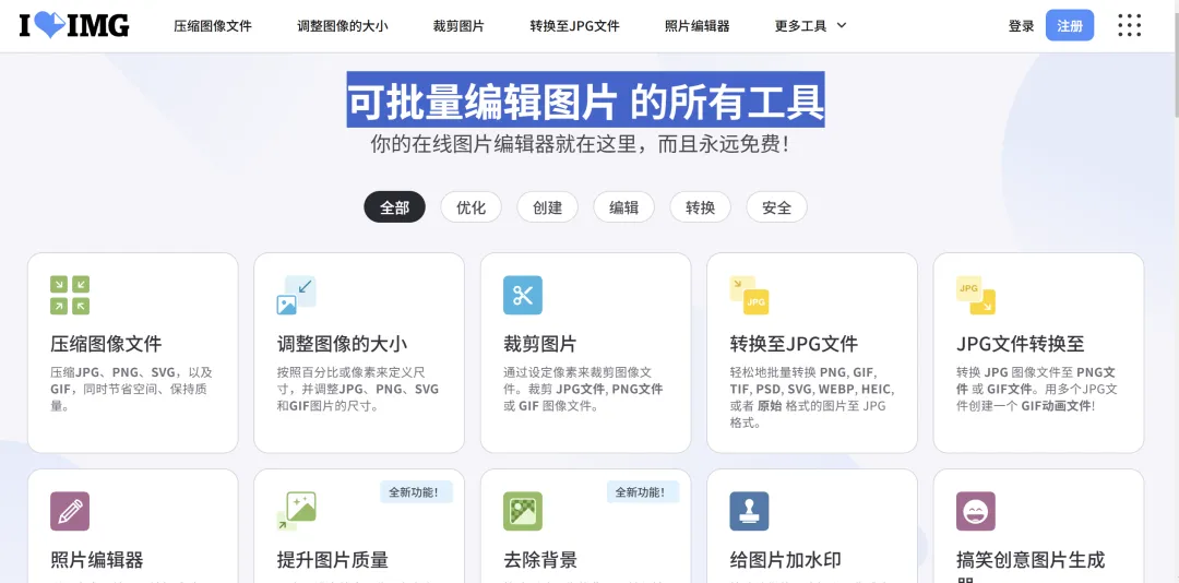 iLoveIMG:可批量编辑图片的所有工具(回复203获取资源)iLoveIMG的优势在于将日常最常用的图片处理功能整合在一个平台,既不像专业软件那么复杂,又不至于功能太单一,找到了实用性与便捷性的平衡点。