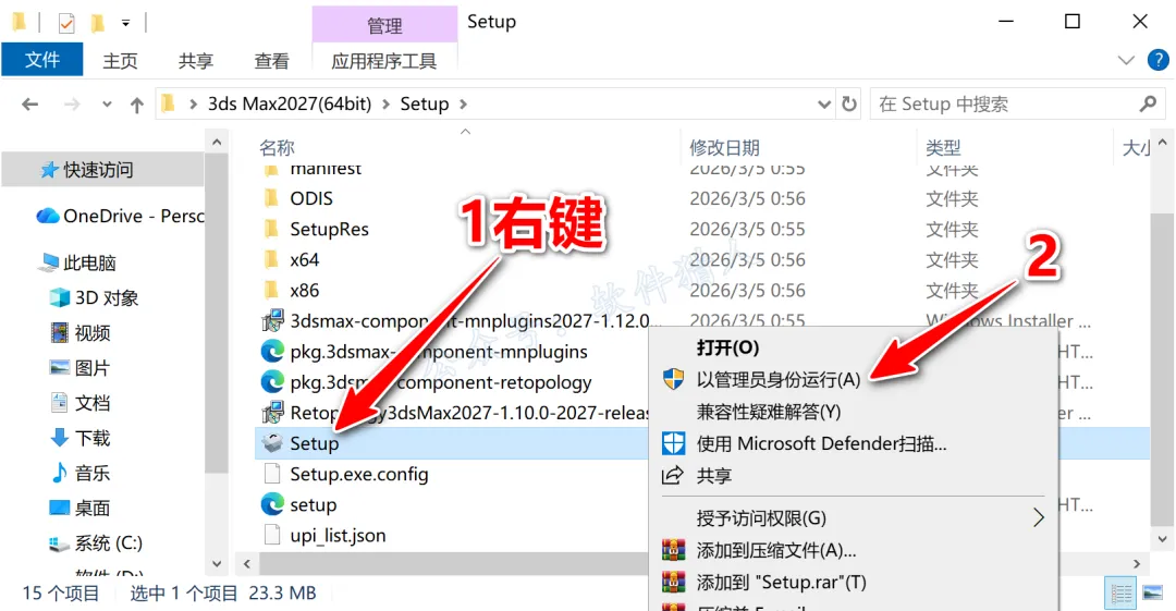 3.鼠标右击【Setup】,选择【以管理员身份运行】。