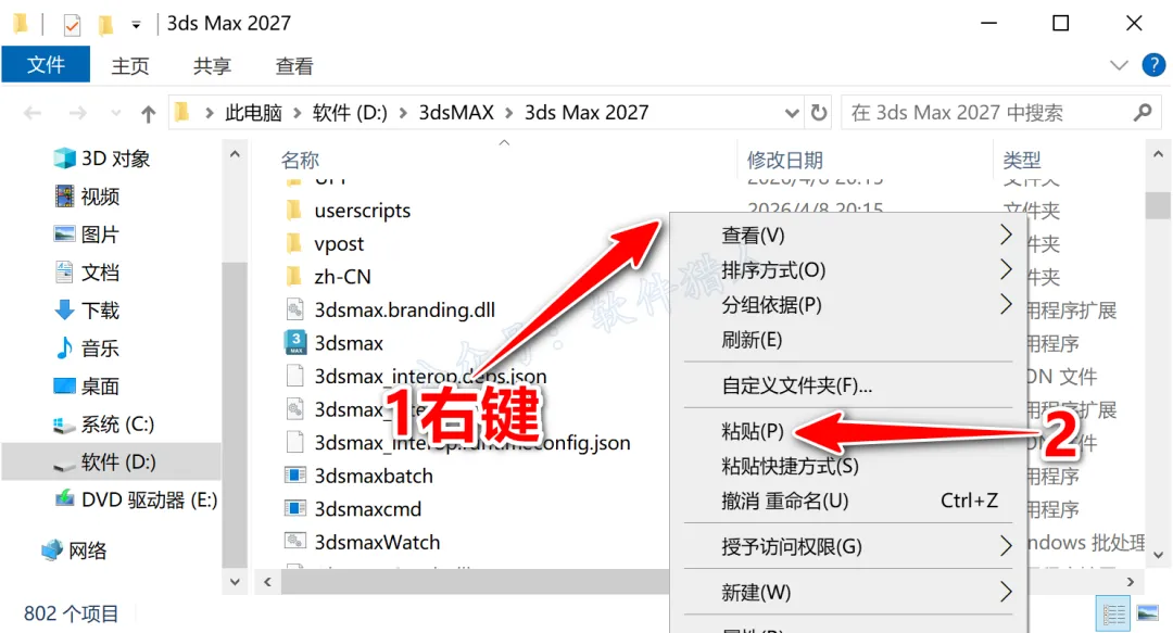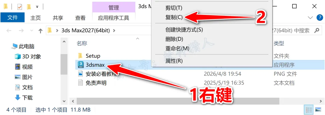 10.回到安装包解压后的文件夹,右键【3dsmax】,选择【复制】。