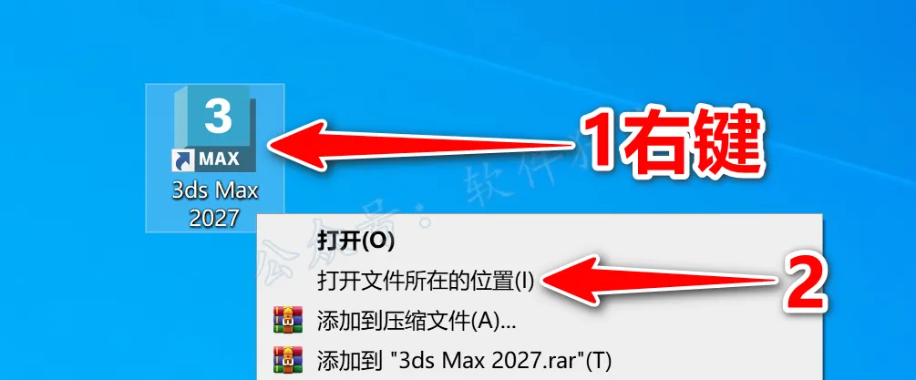 11.右键桌面【3ds Max 2027】快捷方式,选择【打开文件所在的位置】。