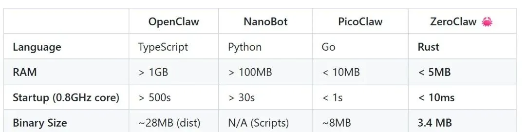 zeroclaw:Rust 写的,主打安全和极致性能