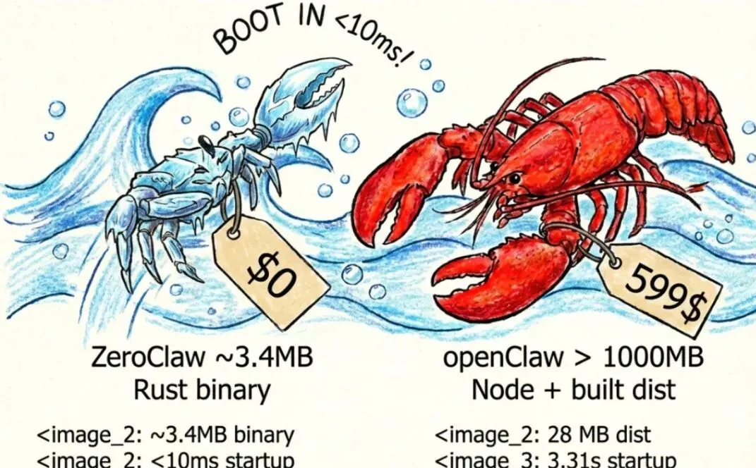 核心数据:内存占用 <10MB,比 OpenClaw 节省 99%,能跑在 10 美元的硬件上。 树莓派、Orange Pi 之类的小板子,装上就能用。