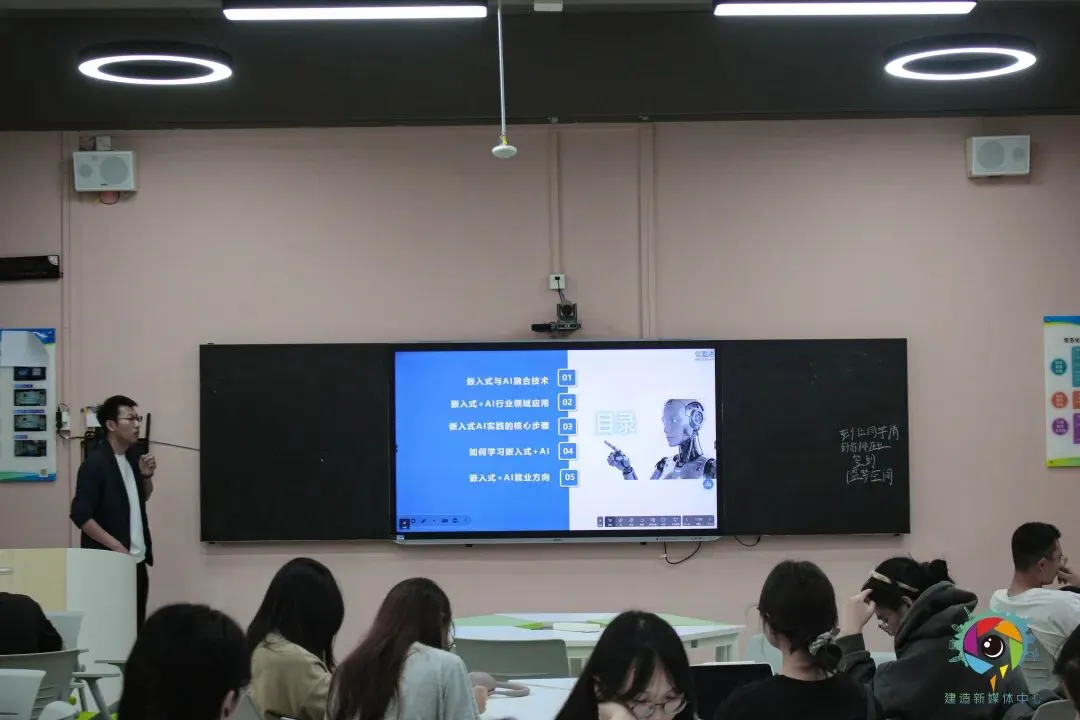 2026年4月9日下午,东莞城市学院城建与智造学院成功举办了一场聚焦AI时代个人成长与发展的科技讲坛,主讲人为高级工程师刘磊。刘磊老师任职于广东信盈达技术有限公司研发部,拥有10年以上单片机控制系统设计、嵌入式系统开发研发经验,参与过多项产品研发并实现量产;同时,他还是深圳电子发烧友特邀专家、深圳CSDN官网特邀专家、鸿蒙系统首批特邀讲师,持有嵌入式高级软件工程师证书,扎实的技术功底和丰富的行业经验,为讲座内容提供了有力支撑。