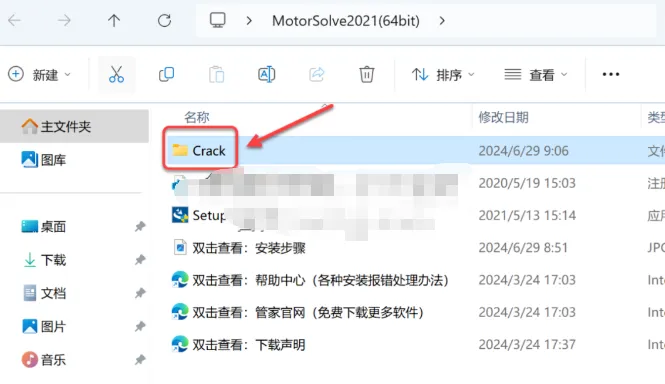 11.打开安装包解压后的【MotorSolve2021(64bit)】文件夹,双击打开【Crack】文件夹。