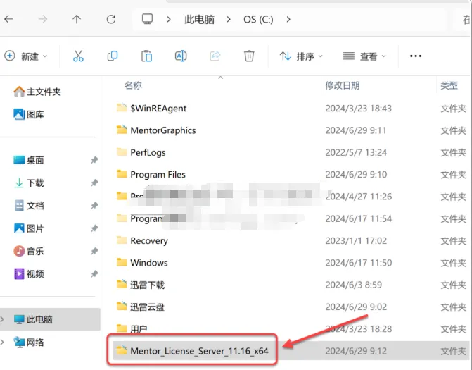 14.双击打开粘贴后的【Mentor_License_Server_11.16_x64】文件夹。