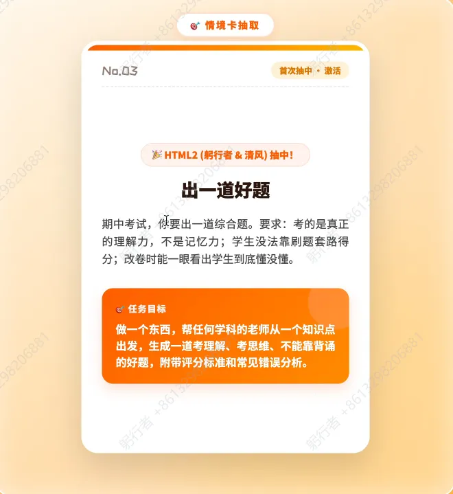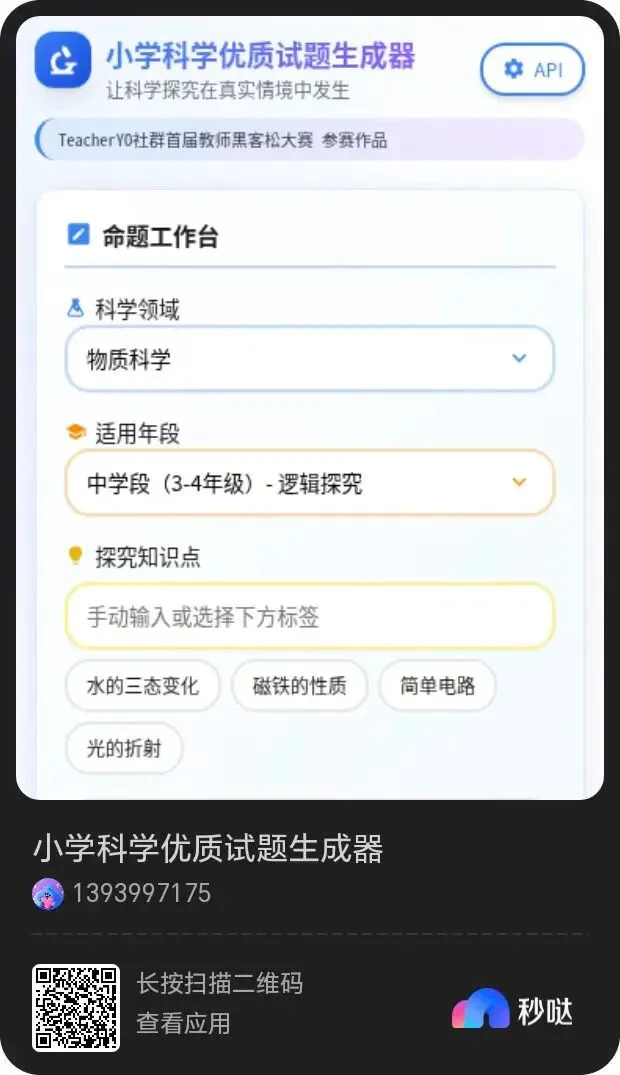 1.在功能模块里,设置几个常见知识点作为快速输入项,方便老师们使用;2.针对1-2年级低年级学段,严格控制题目字数,贴合低龄学生的认知水平,最好能搭配图片辅助理解;3.在作品中添加上活动名称、作者信息和时间。经过一番细致调整,最终的成品格外惊艳。短短两个小时,我们从零开始,手搓出一个能实际投入使用的HTML工具,不仅功能完整,还贴合教学实际,成就感满满。