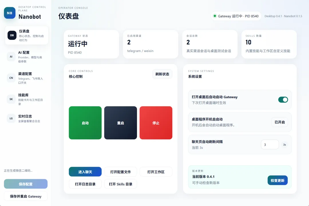 nanobot 则更适合另一类人:先把东西跑起来,再决定要不要继续往深处折腾。尤其是你本来就有一点开发经验,想自己读代码、改代码、接渠道、加工具,那它会顺手很多。
