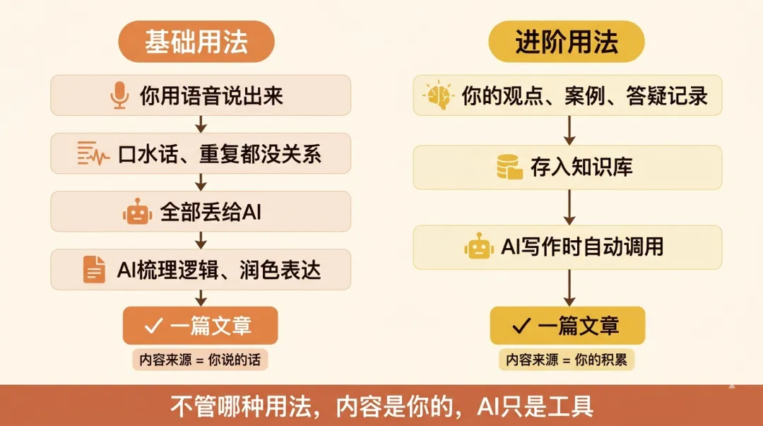 当你的知识库越来越大,AI用的全是你自己的素材,你自己的故事,你自己的观点。这时候AI写出来的东西,和你亲手写的,有什么区别?
