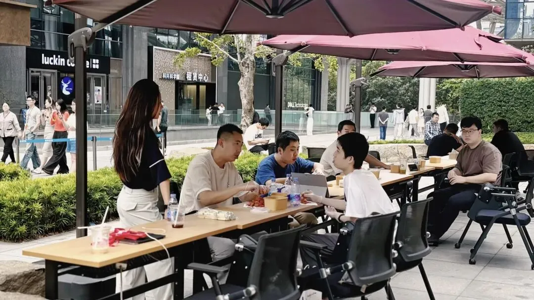 时至中午,科兴科学园迎来午休饭点,人群渐渐聚拢,现场氛围瞬间火热起来。