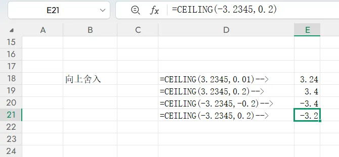 四、向上舍入:CEILING