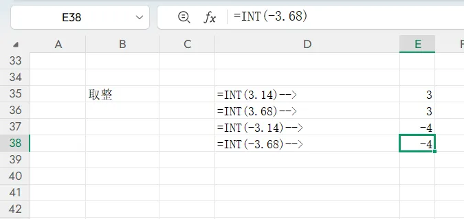 ·整数取整:INT(直接截断取整)