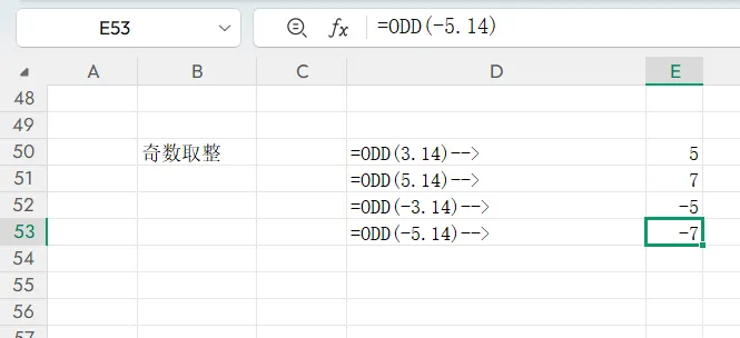 ODD 函数是 EVEN 的反向函数,核心作用是向上取整为最接近的奇数(向绝对值增大的方向),适合需要奇数结果的场景,如序号、分组计算。