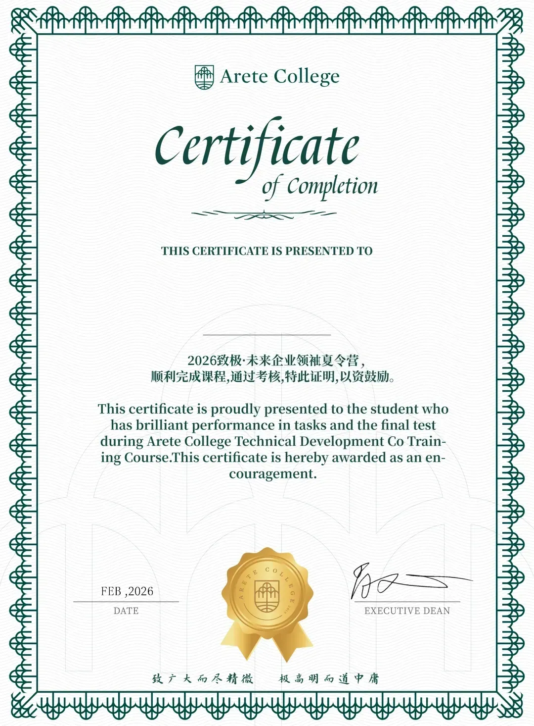 致极学院(Arete College)由一批杰出的中国企业家和教育创新者,联合海外一流院校共同创办,是一所融汇中西知行的创新型文理学院,致力于保护新世代的创业精神和领导力,培养未来的企业家。