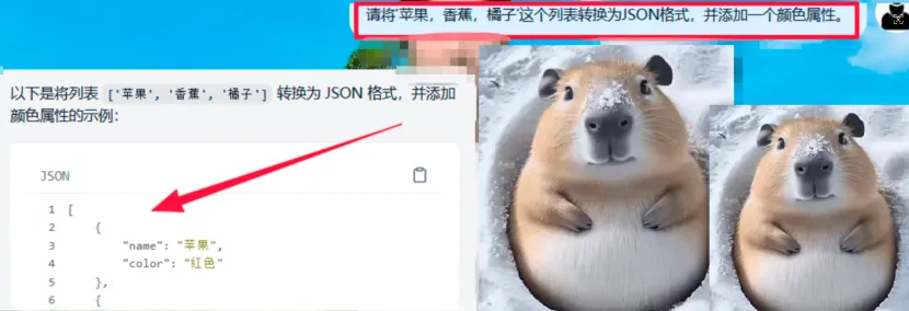 传统机器人:无法理解“JSON”和“属性”的关联,直接回复“转换完成”或原样输出字符串