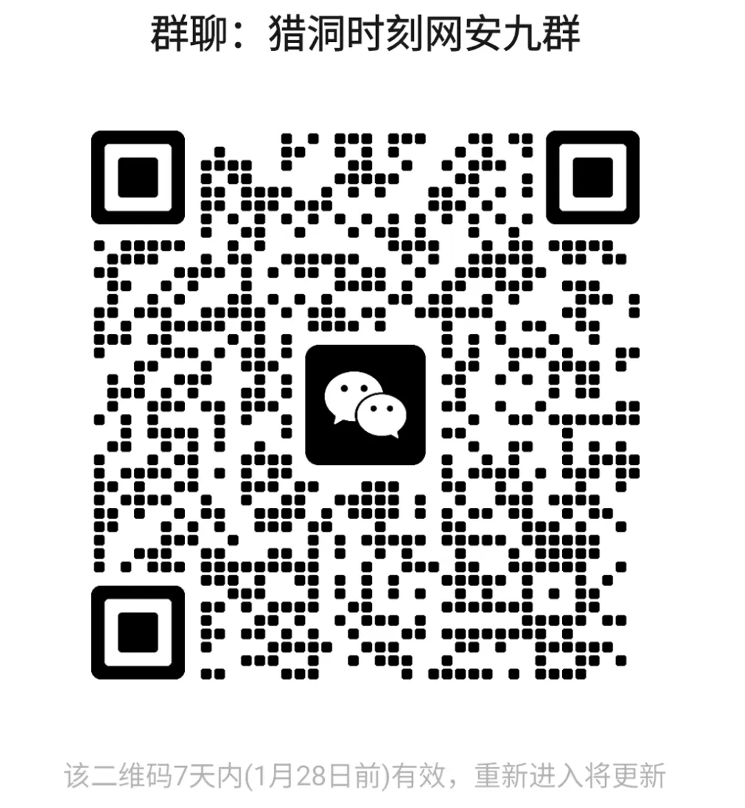 本公众号“猎洞时刻”旨在分享网络安全领域的相关知识,仅限于学习和研究之用。本公众号并不鼓励或支持任何非法活动。本公众号中提供的所有内容都是基于作者的经验和知识,并仅代表作者个人的观点和意见。这些观点和意见仅供参考,不构成任何形式的承诺或保证。本公众号不对任何人因使用或依赖本公众号提供的信息、工具或技术所造成的任何损失或伤害负责。本公众号提供的技术和工具仅限于学习和研究之用,不得用于非法活动。任何非法活动均与本公众号的立场和政策相违背,并将依法承担法律责任。本公众号不对使用本公众号提供的工具和技术所造成的任何直接或间接损失负责。使用者必须自行承担使用风险,同时对自己的行为负全部责任。本公众号保留随时修改或补充免责声明的权利,而不需事先通知。