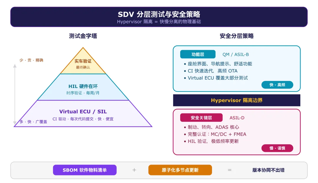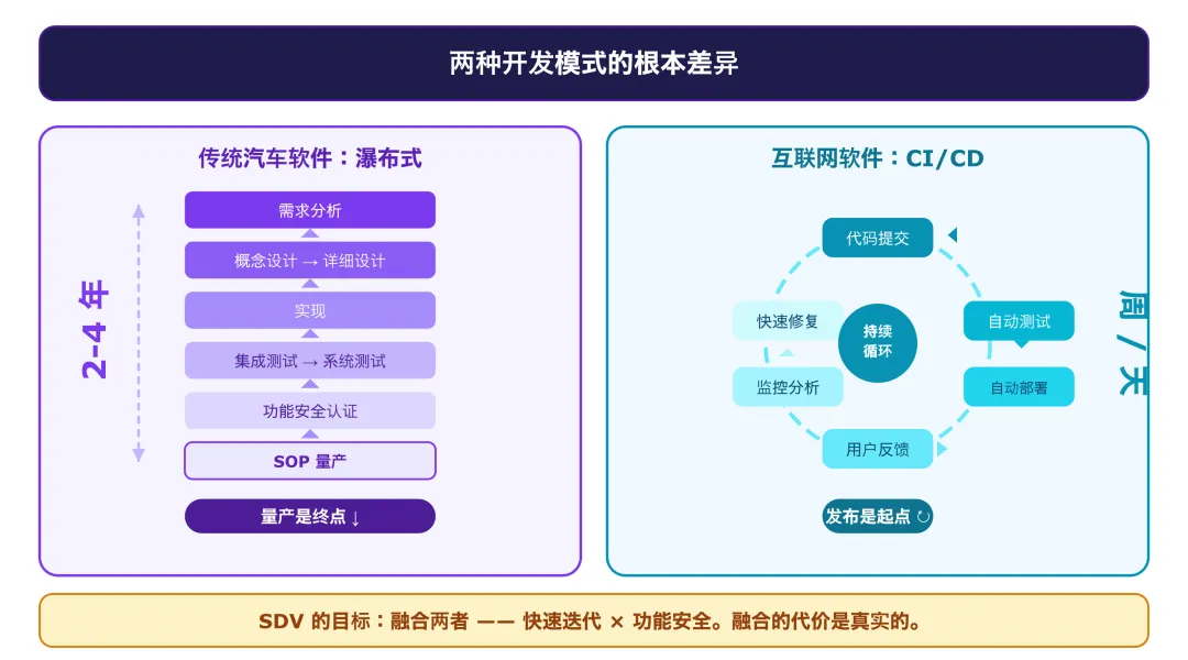 SDV 的目标是融合两者——让汽车软件既能快速迭代,又能满足功能安全要求。