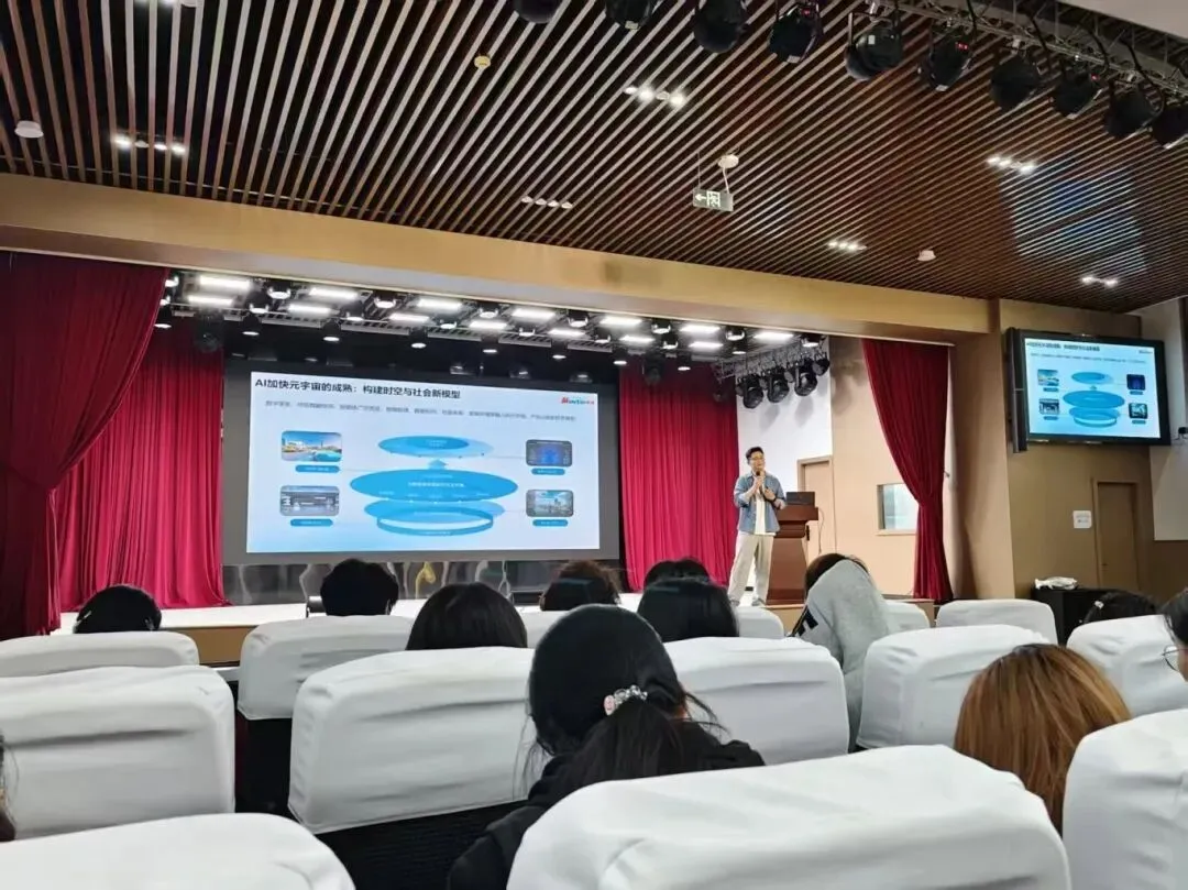 针对艺术设计专业特色,主讲人重点介绍了人工智能与文创、设计、数字媒体的深度融合。从AI 辅助艺术创作、数字人 IP 打造、非遗数字化修复、元宇宙场景构建、虚拟直播、智能交互设计等应用场景出发,结合敦煌壁画 AI 修复、虚拟数字人代言、自贡灯会数字人、文旅元宇宙等鲜活案例,为艺术设计学子提供了 “AI + 设计”“AI + 文创”“AI + 数字内容” 的创新方向,启发同学们将专业技能与前沿技术结合,拓展创作边界与就业路径。