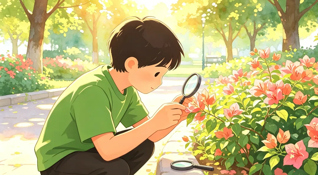 学习任何一项技能,最重要的都是,扎扎实实地练好基本功。很多时候,我们以为观察得够仔细了。但真正动笔时才发现,很多细节是模糊的。举个例子,我曾经带着学生在公园里观察叶子花,从花的颜色、形状、大小等多个角度进行观察。到写的时候,很多孩子还是描述不出来三片苞片的具体状态,必须再去观察一遍,才能写出真实的细节。写作的意义在于,它能逼迫我们对一个事物进行全面的、深刻的观察。这样的观察,才能够真正认识一个事物。而用AI代写作文,直接帮孩子跳过了这个环节。它帮孩子把一朵花描述得天花乱坠,但实际上,孩子对那朵花一无所知。更进一步说,AI写作文的危险不在于"它替你描述了",而在于它让孩子误以为"不需要观察也能写出好文章"。我对一件事是怎么看的?为什么这么看?背后的原因是什么?好的写作训练,会不断地追问孩子这些问题。如果你仔细阅读AI写得文章,你会发现,它给出来的观点大而全,词语宏伟而华丽,看似正确,却毫无特点。更不用说,AI写出来的这些东西,完全没办法帮孩子表达出他的思考。写作的意义,绝不能仅仅停留在应试上。写作更是通过文字进行自我探索的绝佳方式。有些写作可以没有读者,只是记录自己的心情、整理自己的经历和思考。这样的写作不是为了取悦任何人,更不是为了得高分,而是为了整合自我的内在体验。AI也能写出看起来很感人的句子,但那些感受和孩子内心真正的感受,可能相差十万八千里。习惯了用AI写作的孩子,沾沾自喜地沉浸在虚假的分数里,付出的代价却是,丧失对世界的观察和思考,对自己和他人感受的迟钝。04 最后,AI代写破坏语感。