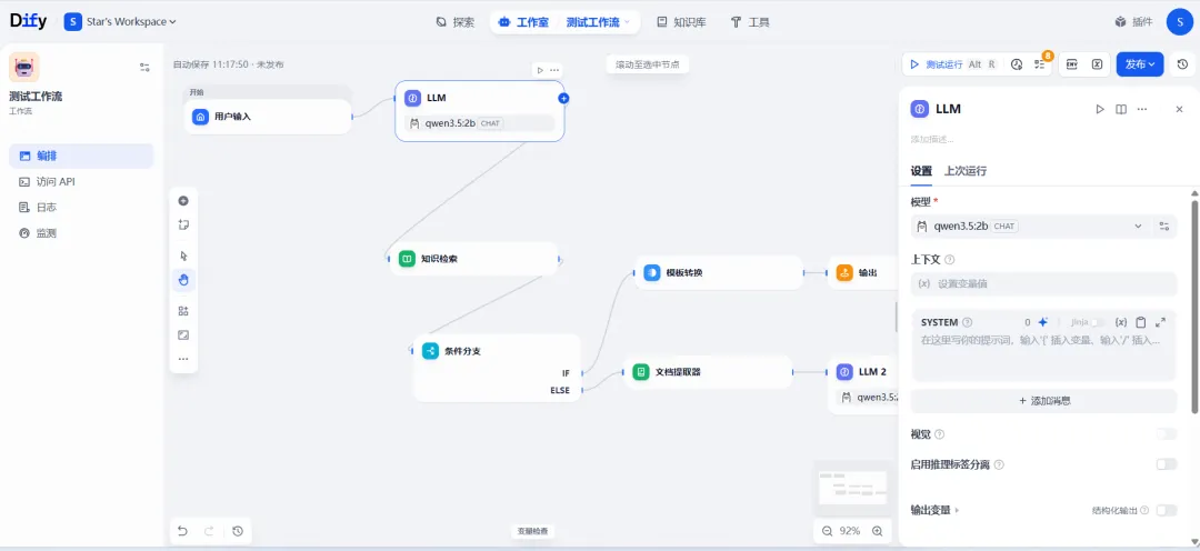 ✅ 工作流编排:像搭积木一样设计AI逻辑,加入条件判断和工具调用