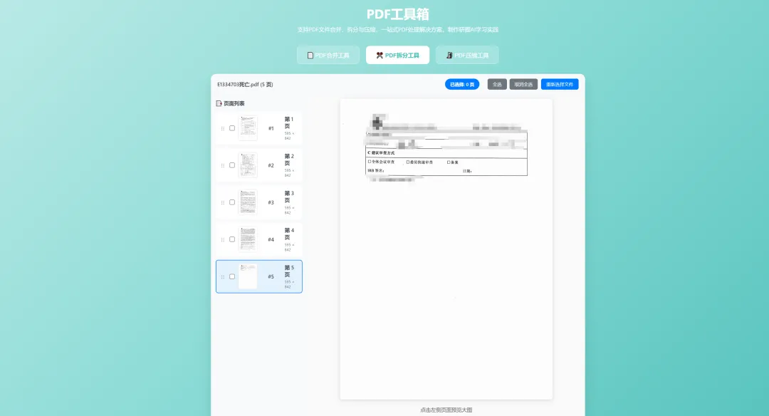 1️⃣ 上传PDF文件或粘贴截图 2️⃣ 自由编辑/选择页面 3️⃣ 一键下载