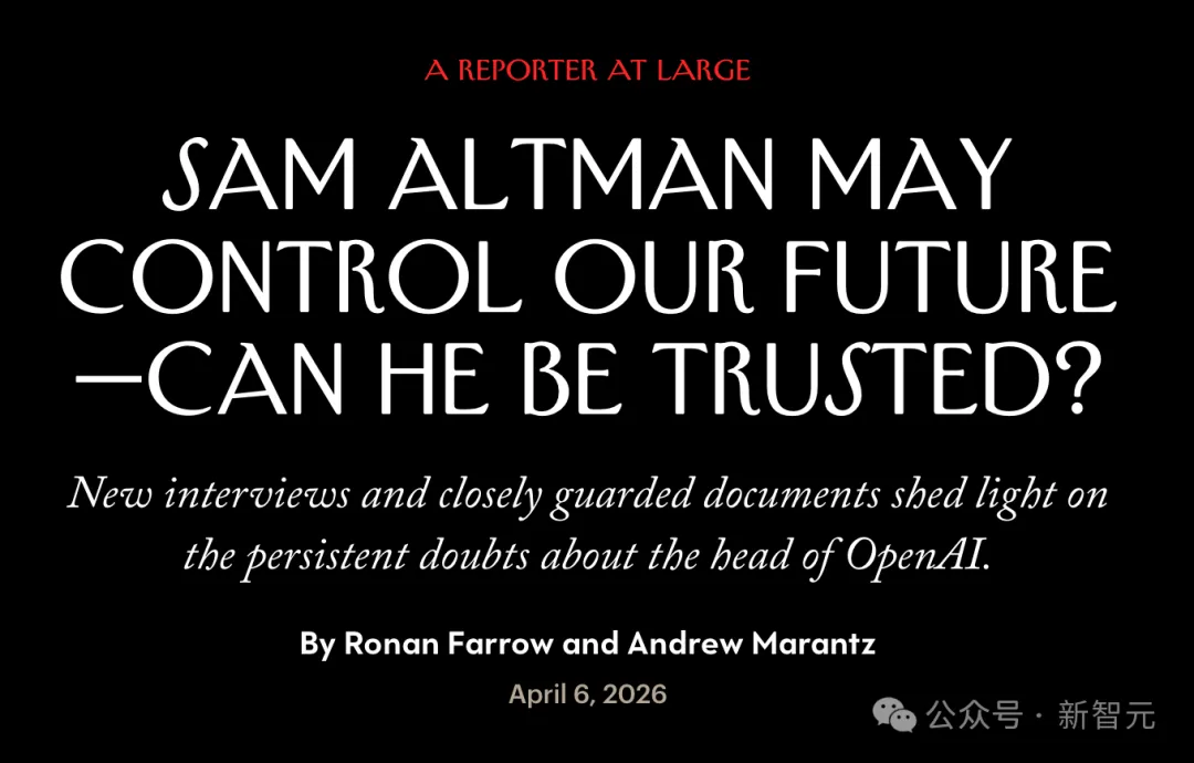 顺着这个问题往下找,几乎绕不开几天前 The New Yorker 发出的那篇长文,《Sam Altman May Control Our Future—Can He Be Trusted?》(山姆·奥特曼可能掌控着我们的未来——他值得信任吗?)。