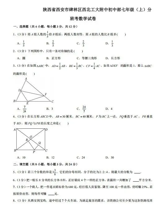 【免费领取】西安新初一分班考试试题,PDF可下载添加老师微信为好友,通过后私信“新初一”,领取分班考真题!(2)由于老师是人工、手动、一对一发送,所以可能会有延迟,请耐心等待。务必一定耐心等待。篇幅有限,完整版扫码回复“新初一”领取
