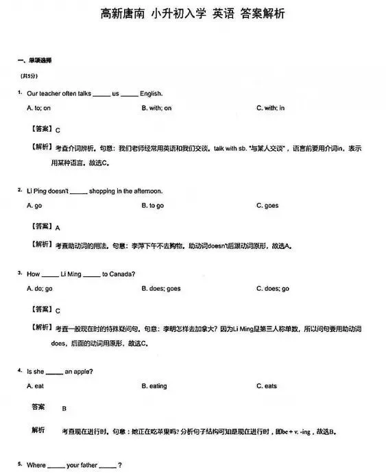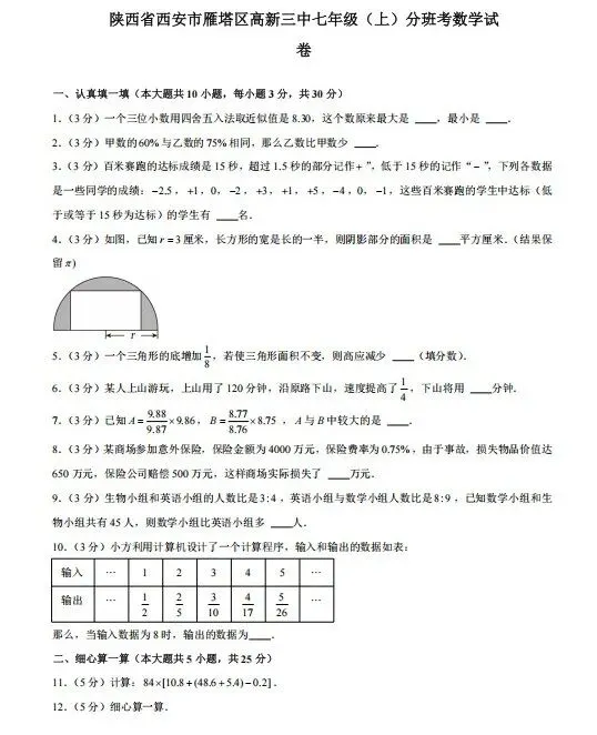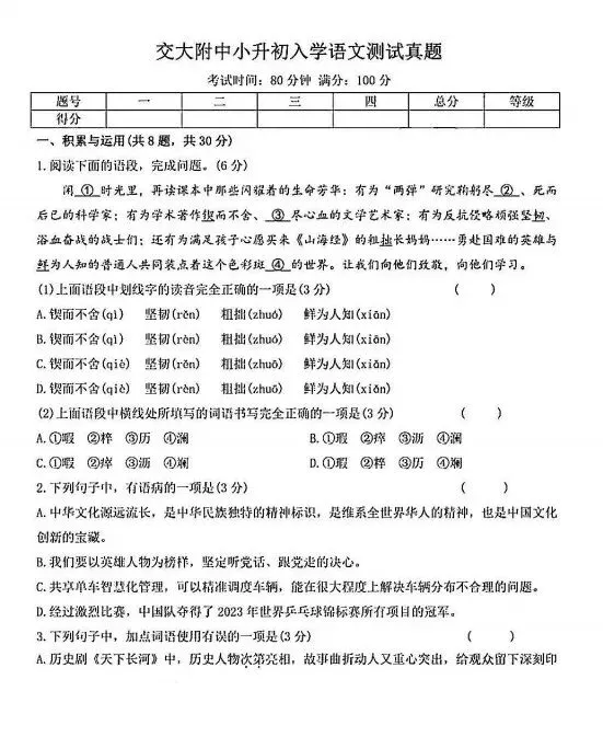 夜雨聆风 > > 办公文件 > 【免费领取】西安新初一分班考试试题,PDF可下载
