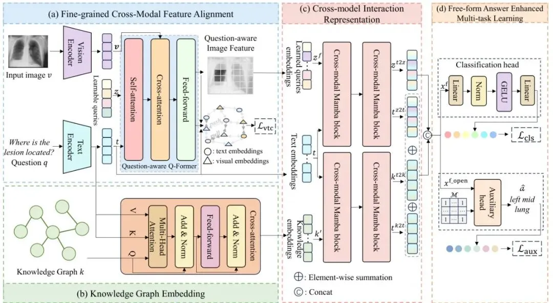 这篇论文巧妙地将两个“当红炸子鸡”——知识图谱和Mamba架构——结合到了一起,直击医学视觉问答(Med-VQA)的两大痛点:缺乏专业医学知识和难以处理开放式问题。它不仅用知识图谱给AI模型“灌输了”医学常识,还用高效的Mamba模块实现了跨模态深度交互,最终在多个权威数据集上实现了全面领先。更重要的是,它的设计思路清晰,模块化程度高,对于想将知识引入多模态模型的研究者来说,具有很高的参考价值。