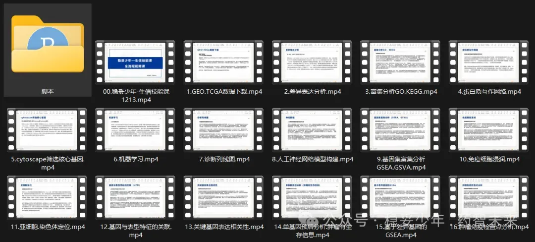 本课程系统涵盖了生物信息学在基因组数据挖掘与分析中的核心流程与方法。课程从GEO、TCGA等公共数据库的数据检索与下载入门,进而学习差异表达分析(使用limma、DESeq2等工具)及结果可视化。在此基础上,深入进行功能富集分析(GO、KEGG)和蛋白质互作网络构建,并利用Cytoscape筛选关键基因模块。课程还整合了多种机器学习算法进行生物标志物筛选,并教授诊断列线图、神经网络模型等临床预测模型的构建与评估。此外,课程内容扩展至基因集富集分析(GSEA/GSVA)、免疫细胞浸润分析、基因的亚细胞与染色体定位、表型关联分析、表达相关性分析、单基因预后分析以及肿瘤免疫检查点分析等一系列高级专题,旨在提供从基础到前沿的完整生物信息学分析能力。