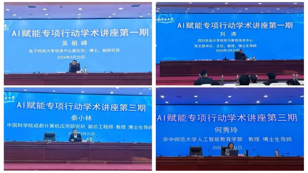 为夯实行动理论基础、把握行业前沿方向,学校特邀电子科技大学、四川农业大学、华中师范大学、中国科学院成都计算机应用研究所及校内多位专家开展专题报告,围绕人工智能前沿、智能教育应用、算力平台建设、产教融合、AI赋能教学创新等主题分享成果经验,为行动实施筑牢理论基础。