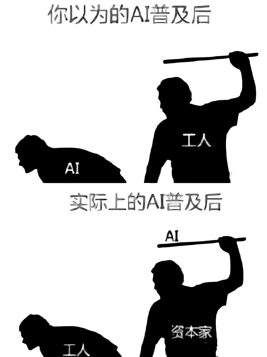 问题不仅仅在于梅什金是一个天真的傻瓜,问题在于他特有的愚钝让他无法意识到他对他人的灾难性影响。他是一个说话像聊天机器人一样的扁平的人。他的“好”在于,他像聊天机器人一样,不带讽刺地应对挑战,提供毫无反思的陈词滥调,从字面上理解一切,依赖心智的自动完成(mental auto-complete)而非真正的思想形成(authentic idea-formation)。因此,新的聊天机器人将与各种意识形态拥趸(ideologues)相处得非常好,从今天的“觉醒”(woke)群体到宁愿继续沉睡的“让美国再次伟大”(MAGA)的民族主义者。文章标题“人工智障(Artificial Idiocy)”的批判根本目标并不是人工智能本身,按照齐泽克的一贯风格,也可以说是这样一种遍布意识形态的“人为蠢行”(Artificial Idiocy):以人类技术反思资本主义下将导致的人类自身异化与缺失。在这个智能大发展、人的大异化时代,AI成了最完美的陪聊者,如最近频频出现的关于AI与人发展、与生产结构和经济发展、与社会进步和变革的讨论,然而很可悲的是我发现大多数主流观点(如AI阴谋论或相反,AI引发财富增长、按需分配的到来等),它们的阐述本身都是毫无理论思考和现实基础,都是靠AI总结和确认出来的自以为就是正确科学的结论和描述。一个真正的人类主体,总是处在内在与外部矛盾的尖头,我们的言语中充满了压抑、否定和自我怀疑。但AI没有潜意识,它只有数据库。当你和一个“觉醒派”AI聊天时,它只会不断地确认你的偏见,用最政治正确的术语包裹你,为你构建一个没有任何矛盾与冲突的道德温室。反之亦然。正如齐泽克文中的梅什金公爵比喻。梅什金公爵并非智力低下,而是“绝对善良”,是“纯粹的实证主义者”。他试图对所有人好,试图理解每一个人的立场,结果呢?他所到之处,灾难横行,因为他缺乏那种能够做出“善”决断的“恶”,缺乏那种为了确立某种“包容”秩序而必须进行的“排他”——AI就是那个数字梅什金公爵。它礼貌、顺从、知识渊博,试图取悦每一个提问者。但正是这种无底线的“理解”,这种没有立场的“中立”,让它成为了最可怕的意识形态放大器。它剥夺了对话中的冲突,而只有在矛盾和冲突中,真正的主体性才可能诞生——正如齐泽克在一次访谈中指出的:“我的学生用AI生成论文,而我用AI批阅,那么教育过程中人的主体性便被抽离了。”于是我们看到齐泽克在这篇文章中给人不寒而栗的警示:危险并不在于机器会突然醒来,产生消灭人类的念头。不,危险在于我们自己,这种异化是一个双向的过程。当我们习惯了与豆包、Siri、ChatGPT那些智能客服打交道时,我们的语言也开始发生变化,我们的感知、心理互动、思想形成,在冲突和矛盾中把握现实和自我都将全面退化。如果将精神分析交给AI那将是灾难的。我们开始像编写提示词(Prompt)一样说话。我们去掉了反讽,去掉了模糊性,去掉了那些不仅是修饰更是思想本体的复杂修辞。我们开始追求“清晰”、“高效”和“无歧义”。克莱斯特所说的“在言语中形成思想”的创造性过程,正在被一种后工业化的“认知自动补全”所取代。我们不再在说话中寻找思想,而是在从一个巨大的、现成的陈词滥调库中调用数据。当我们丧失了在语言中“跌倒”的能力,丧失了说出那个可能会冒犯人、可能会出错、但却无比真实的词的能力时,我们也就丧失了主体性。这不再是科幻小说里的“天网”时刻,这是人类精神的安乐死。我们在温水中,被无数个礼貌的、高效的、毫无灵魂的算法包围,慢慢地,我们便忘记了如何作为一个人去咆哮,去口吃,去在创伤与绝望中、在无意义与虚无中创造出新的意义。我们变成了我们工具的镜像。当我们终于把AI训练得像个人的时候,我们会发现,那是因为我们自己已经活得像台机器了。这才是真正的深渊。当你凝视它时,它微笑着问你:“我还能为您做些什么?”而你发现,除了那个标准答案,你已经无话可说。